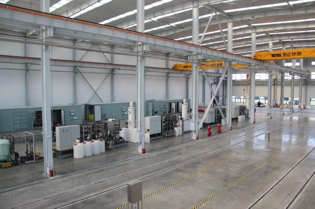 金正環保科技有限公司于2018年4月3日簽訂第一期合同,4月13日首批5套日處理2100噸的DT特種膜設備已經發貨到現場,目前已進入調試階段。該項目體量大,處理難度高,工期極緊,金正環保從簽訂合同,所有設備從生產組裝到達現場,僅用了10天時間,這在垃圾滲濾液乃至高難廢水處理領域都很難做到。
