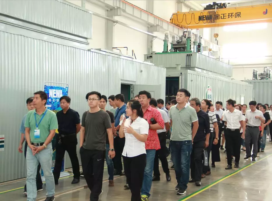 會議報告與對話環節結束后,100余人與會代表蒞臨煙臺金正環保產業園參觀考察。