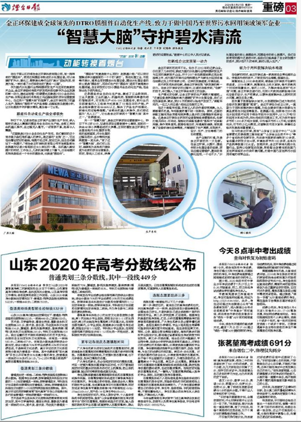 在位于萊山區的煙臺金正環??萍加邢薰?,有一種神奇的“膜組件”,使用這種膜組件制成的水處理設備,可以將煤礦礦井水、煤化工、鋼鐵焦化等行業的“廢水”回收利用、變廢為寶,一舉打通了水污染防治的“最后一公里”。