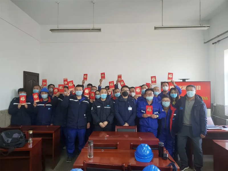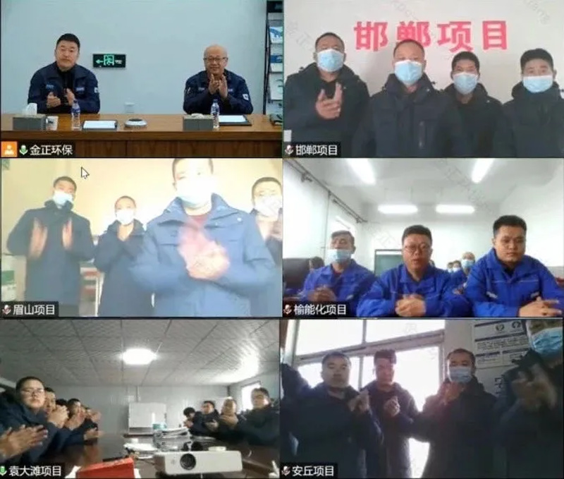 “堅(jiān)守在一線的你們辛苦了!祝大家新春快樂!”2月8日,公司101會(huì)議室溫暖如春,一句句暖心的問候和祝福,穿越千山萬水,隔空傳遞著。受疫情影響,為減少人員流動(dòng),公司總裁李越彪先生和執(zhí)行副總裁傅進(jìn)玉先生以視頻連線的方式對(duì)袁大灘、邯鄲、安丘、榆能化、眉山五個(gè)堅(jiān)守項(xiàng)目現(xiàn)場的一線員工進(jìn)行慰問。