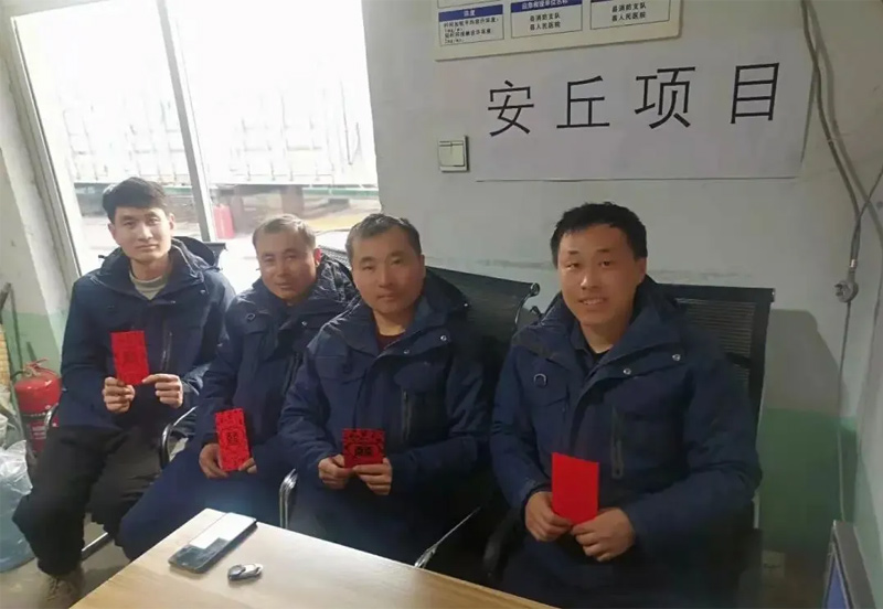 除夕,萬家團(tuán)圓之際,金正環(huán)保各部門、各項(xiàng)目現(xiàn)場依然有人奮戰(zhàn)在工作崗位上,放棄了與家人團(tuán)聚的歡聚機(jī)會(huì),默默的奉獻(xiàn)服務(wù),保證工作順利有序開展,公司執(zhí)行副總裁傅進(jìn)玉、運(yùn)營副總裁馬世虎、管理副總裁于萍等領(lǐng)導(dǎo)帶隊(duì),向堅(jiān)守在項(xiàng)目現(xiàn)場和公司各崗位值班人員送去了節(jié)日問候和紅包。