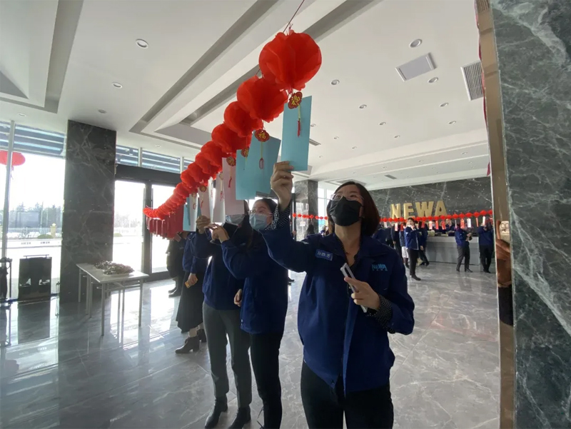 火紅的燈籠將現場點綴得分外喜慶,200多條內容豐富、各式各樣的謎語展現在員工面前,燈謎涵蓋了公司產品謎、環(huán)保謎、物品謎、字謎等,既具娛樂性,又具知識性。員工們都爭先恐后的看謎面猜謎語,或仰目細看,或低頭深思,或相互討論。一番苦思冥想,一條條謎底被紛紛猜中,不一會兒兌獎處就排起了長龍。兌過獎的員工手里拿著獎品,臉上都洋溢著歡樂、喜悅的笑容。