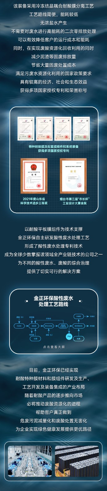 膜技術前沿丨煙臺金正環保耐酸平板膜攻克酸性廢液資源化處理難題,助力循環經濟發展